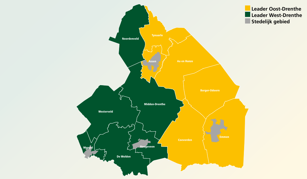 LEADER Oost-Drenthe omvat de gemeentes Tynaarlo, Assen, Aa en Hunze, Borger-Odoorn, Coevorden en Emmen.